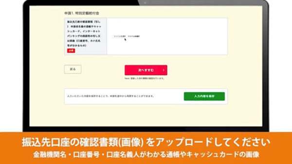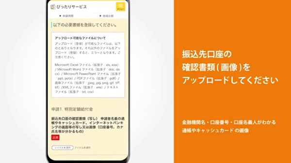 市区町村会给每一户的户主发送申请书,以家庭为单位进行申请。除了在发放的申请书上计入家庭成员信息,一共申领的钱数及汇款银行账户信息外,还需要提交身份证明的复印件及银行账户复印件。身份证明书指的是公共机构发行的,证明一个人是其本人、或在法律上取得一定资格的证件,一般包括在留卡、保险证、驾照等记载姓名、性别、照片、出生年月及住所的证件。