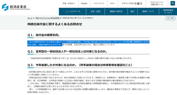 同时日本政府对受疫情影响的收入减少的企业也给予「持続化給付金」,中小企业(最多200万日元)和个人事业主(最多100万日元)从5月1日开始接受网上申请,最快在8日开始发放。